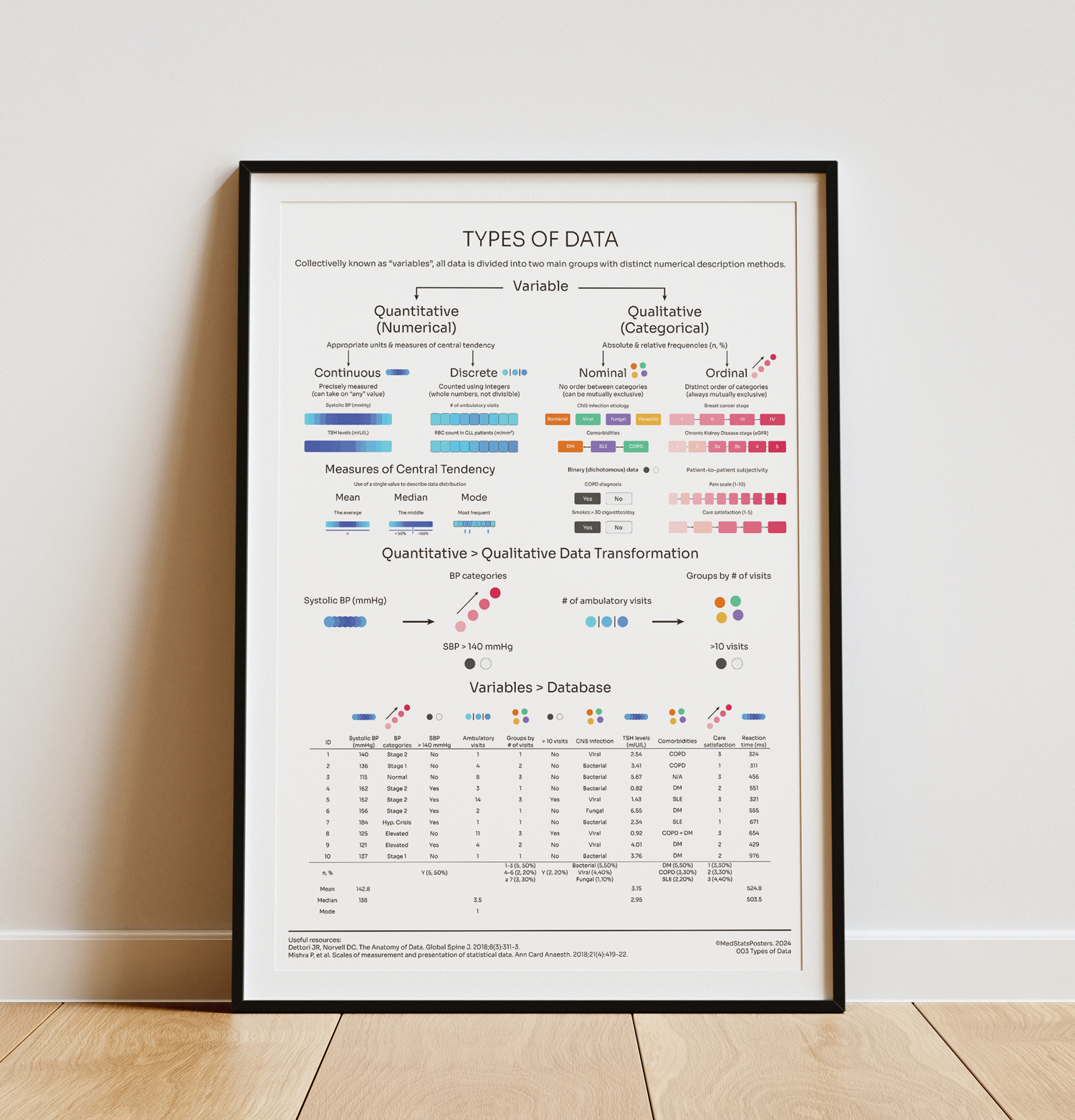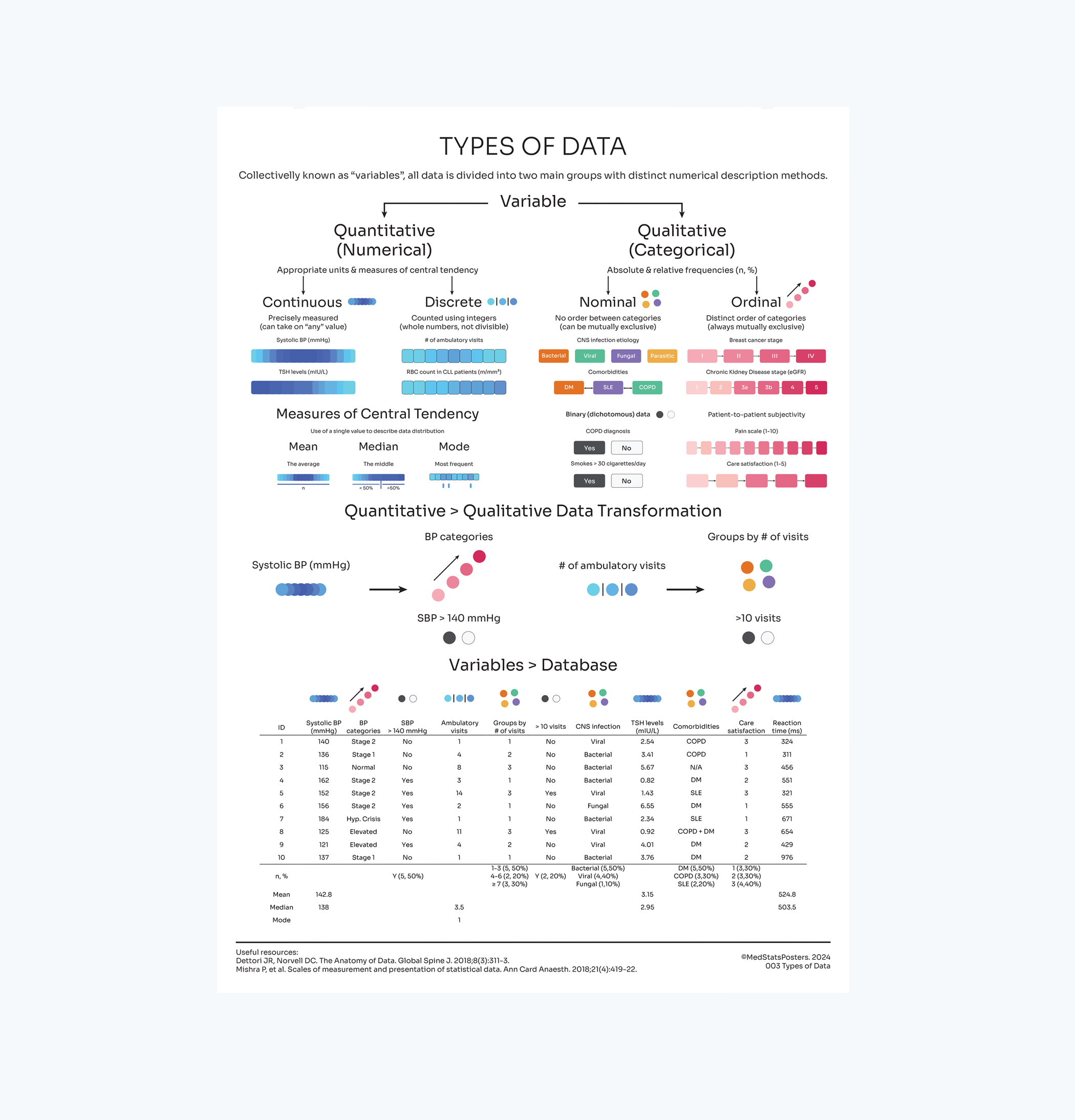 It is always practical to follow theory with an example. So, to help you with day-to-day data entry, a database with different variables is at the bottom third of the poster with appropriate numerical descriptions.